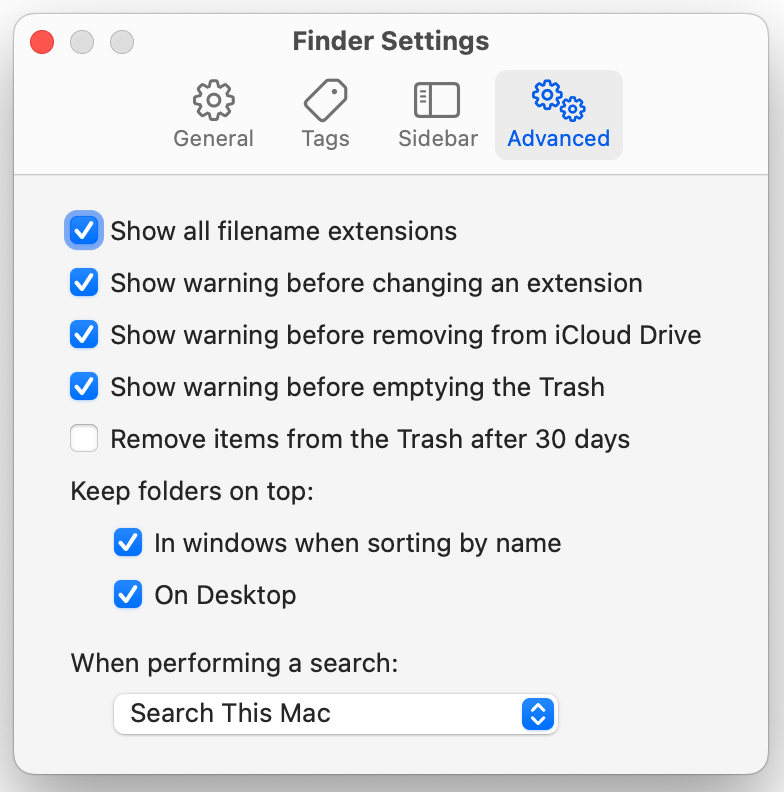 Keep folders at the top: When sorting by name, you can keep folders (in alphabetical order) at the top of the list. Choose Finder > Settings, click Advanced, then, below “Keep folders on top,” select the “In windows when sorting by name” checkbox.
