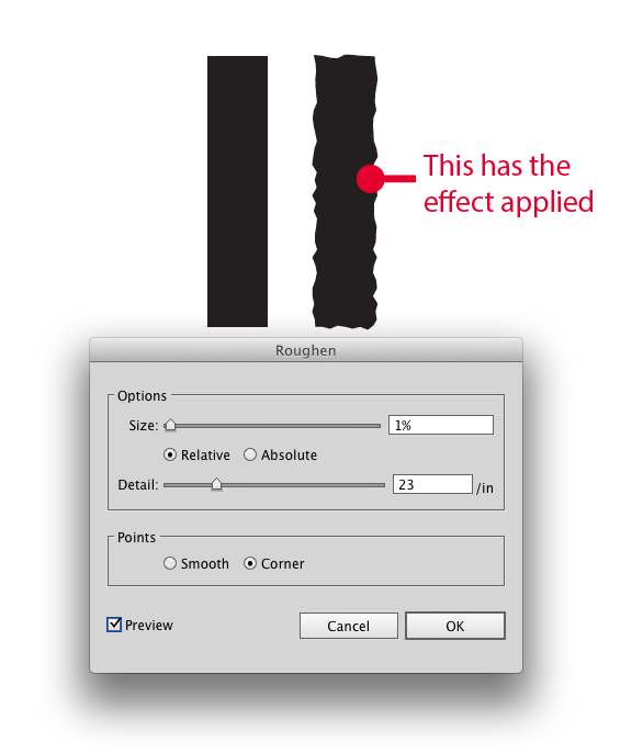 I’m looking to give my very smooth vector drawing a hand-drawn style. When I say this, I don’t mean applying a texture over the top of the whole vector (like this). A technique that would produce